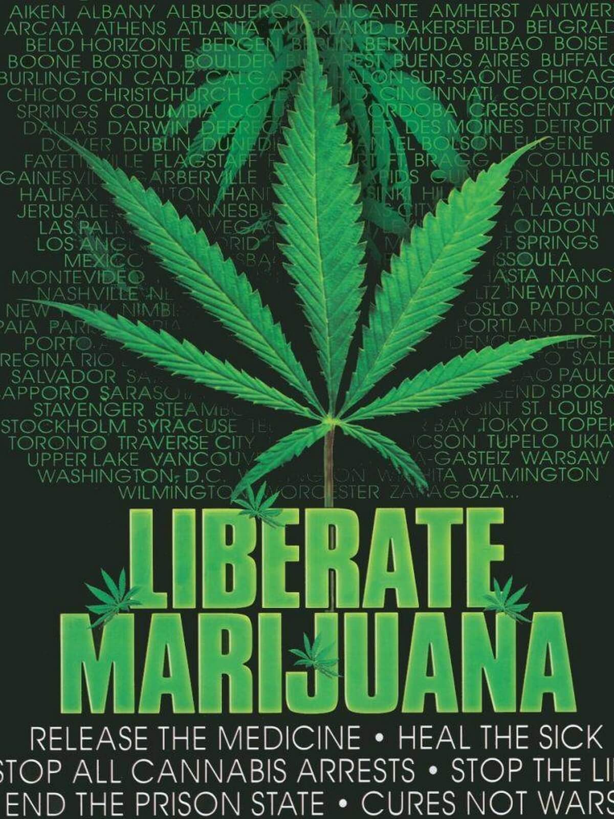 Liberate Marijuana Poster great for any dorm room or cafeteria pin board.